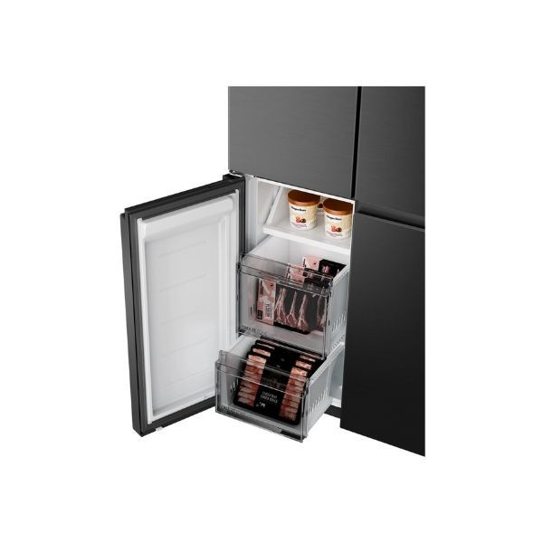 Thiết kế tủ lạnh Multi Door 4 cửa Aqua giúp phân chia không gian bảo quản khoa học, hạn chế thất thoát hơi lạnh khi mở tủ, đồng thời tăng tính thẩm mỹ cho tổng thể không gian bếp hiện đại. Dung tích 570 lít của tủ lạnh Aqua AQR-M570XA(FS) đáp ứng tốt nhu cầu lưu trữ thực phẩm phong phú cho gia đình đông người, hỗ trợ bảo quản số lượng lớn thực phẩm tươi sống, đồ uống và nguyên liệu chế biến.