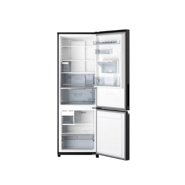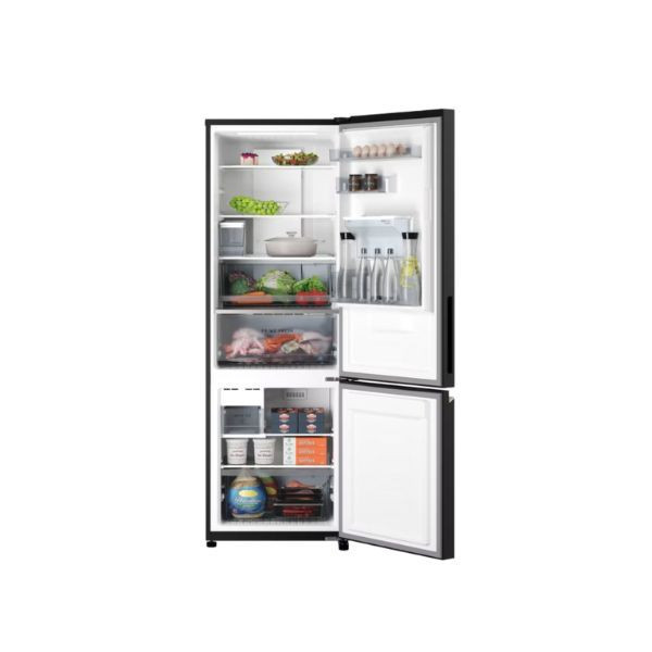 Tủ lạnh nổi bật với thiết kế phẳng tinh tế, cửa tủ kim loại đen sang trọng phù hợp với không gian nội thất hiện đại. Tủ lạnh 2 cửa này có thiết kế ngăn đá phía dưới thay vì ngăn đá trên như các dòng sản phẩm phổ thông cũ. Cách bố trí ngăn mát ở trên sẽ vô cùng tiện lợi bởi ngăn mát là nơi được dùng thường xuyên hơn, người dùng sẽ không cần cúi người khi lấy thực phẩm.