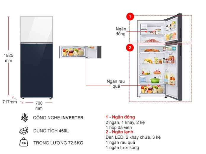 Bênh cạnh đó, với dung tích lớn 460 lít, tủ lạnh Samsung mang lại không gian lưu trữ thực phẩm rộng rãi cho gia đình có 4 - 5 thành viên.