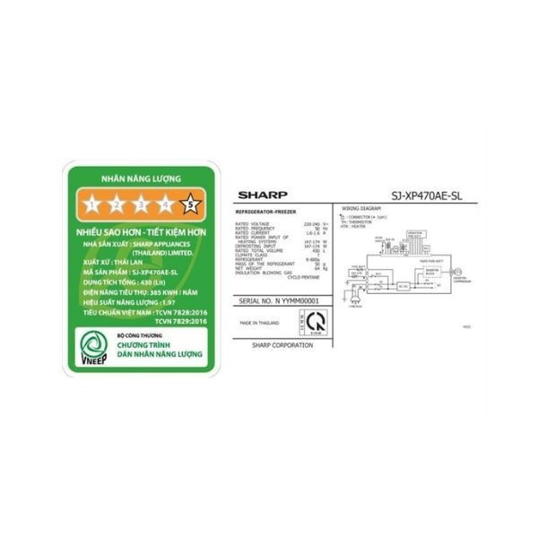 Thông số kỹ thuật: Tủ lạnh Sharp Inverter 430 lít SJ-XP470AE-SL