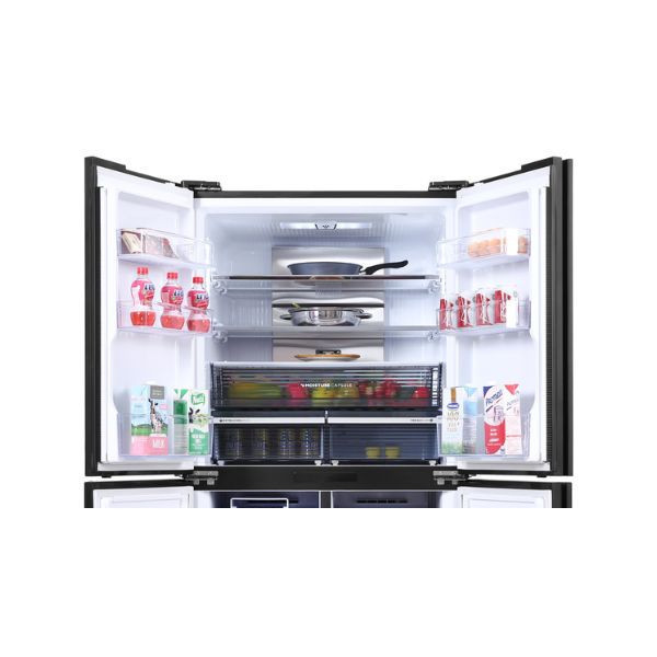 Sharp Inverter 572 lít SJ-FX650V-MK thuộc kiểu tủ lạnh Frenchdoor hiện đại với 4 cánh cửa đóng mở tiện lợi, kèm với mặt kính trên cửa tủ toát lên vẻ đẹp sang trọng, đây chắc chắn là nội thất khiến cho không gian bếp của bạn thêm phần tinh tế.